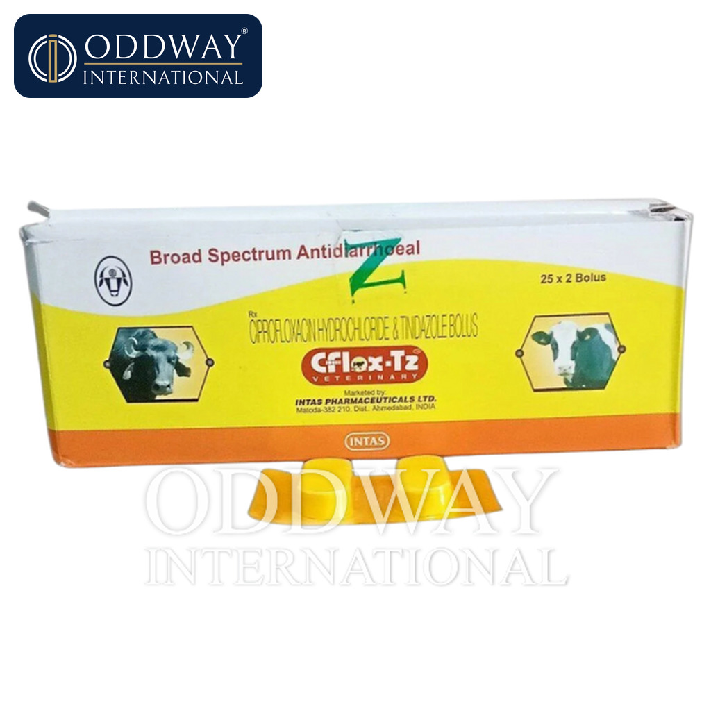 Cflox TZ Bolus is categorized as a veterinary pharmaceutical bolus. Classification and permitted indications vary by country; therefore, buyers should confirm local regulatory status, registration pathways, and any restrictions for import, distribution, or institutional use. Oddway International supplies this product strictly for B2B trade and compliant channels, with documentation support to match buyer and authority expectations.