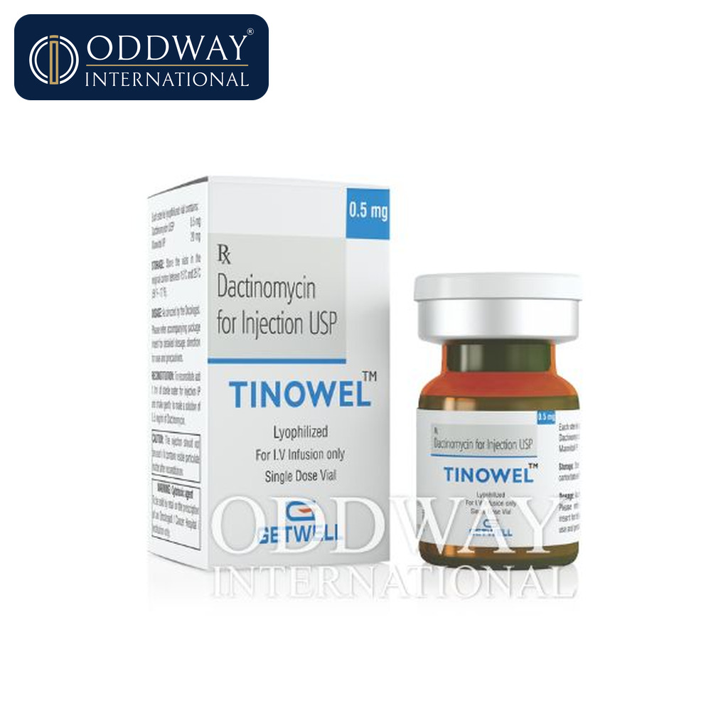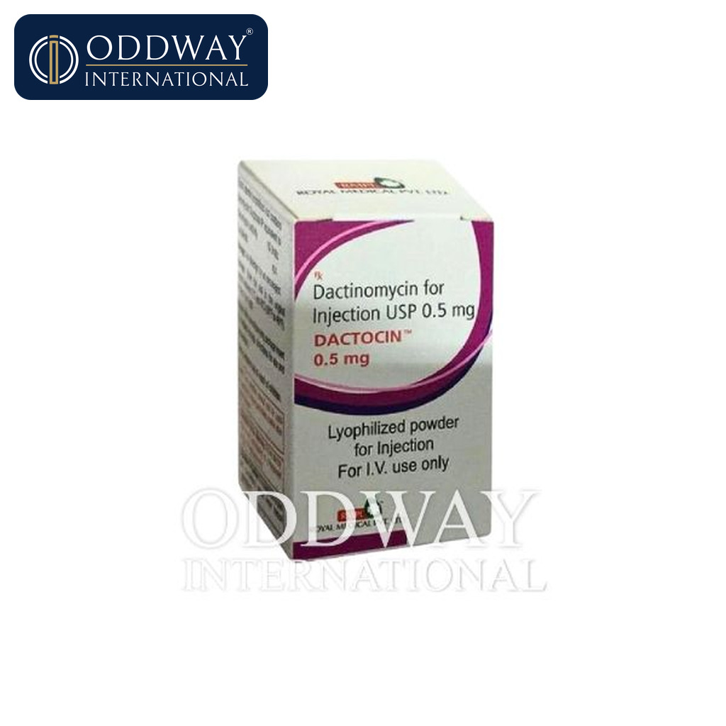 This product is supplied as Dactinomycin 0.5 mg per vial injection (lyophilized powder for reconstitution or as per approved presentation by the requested brand). Packaging configurations vary by manufacturer; therefore, Oddway International confirms the exact pack size, labeling language, and carton configuration before order finalization. We do not assume packaging type and share photos or pack specs upon request where available.