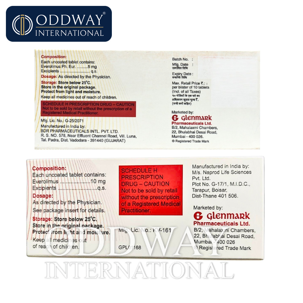 Oddway International can source Everolimus in 5 mg and 10 mg tablet strengths. Packaging configurations vary by manufacturer and destination requirements; consequently, we confirm pack size, labeling language, and serialization/traceability expectations before order confirmation. We support supply for regulated and semi-regulated markets, subject to local rules and product availability.