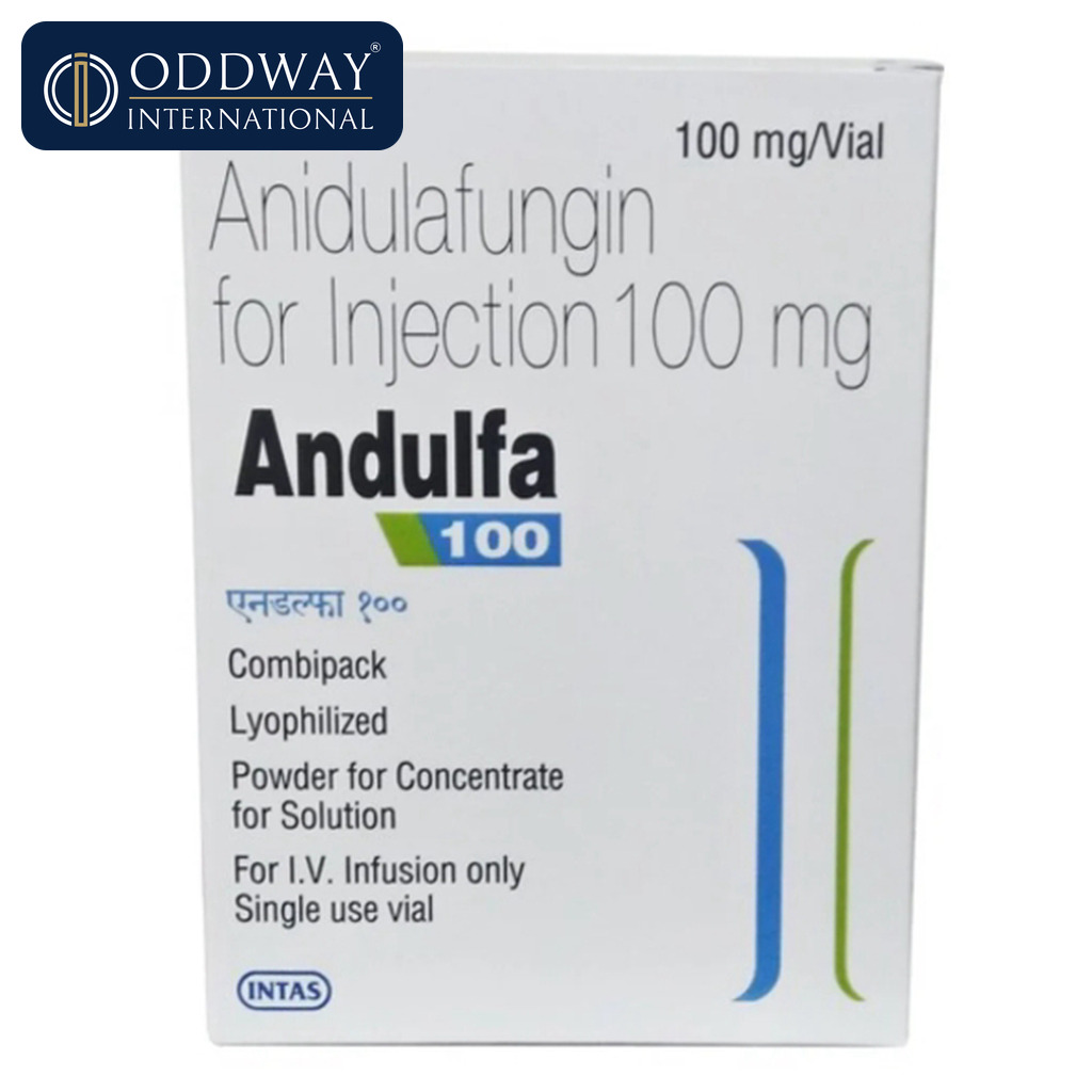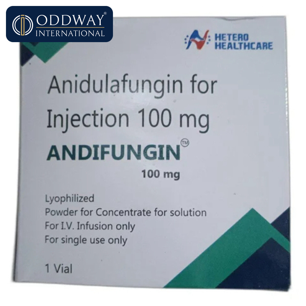 This listing covers Anidulafungin 100 mg Injection. Packaging configuration can vary by requested brand and market availability; therefore, Oddway International confirms the exact presentation (vial count per box, secondary packaging, and shipper details) at the time of quotation. We support procurement planning by sharing pack information suitable for warehousing and distribution.