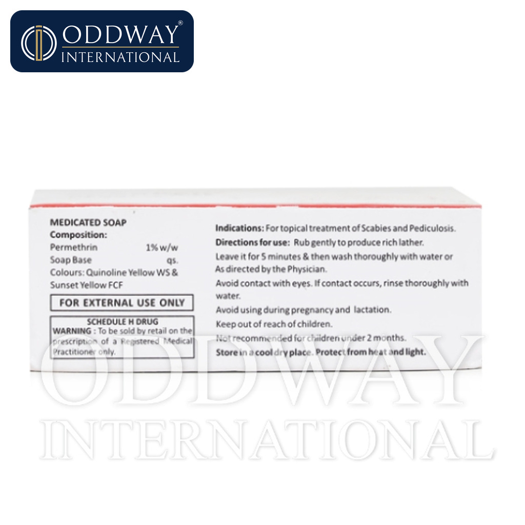 Permethrin belongs to the antiparasitic class for topical use. In soap form, it is typically positioned as a medicated cleansing product intended for skin application under local regulations and prescribing practices. However, classification may vary by country (drug, medicated soap, or special category). Consequently, Oddway International confirms the appropriate regulatory pathway with the importer before order confirmation.